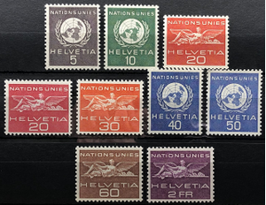 UN emblem, Stutue from UN Building, Geneva, 1955-59. Complete set of 9.
