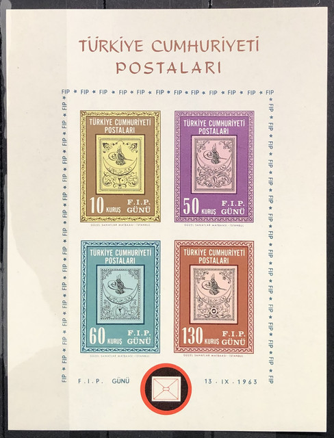 Centenary of Turkish postage stamps, International Philatelic Federation, 1963. Souvenir sheet.
