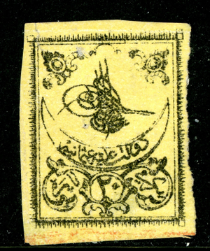 Turkey 1863 First Issues 20pa Black/Yellow Thick Paper Scott #6 Mint V299