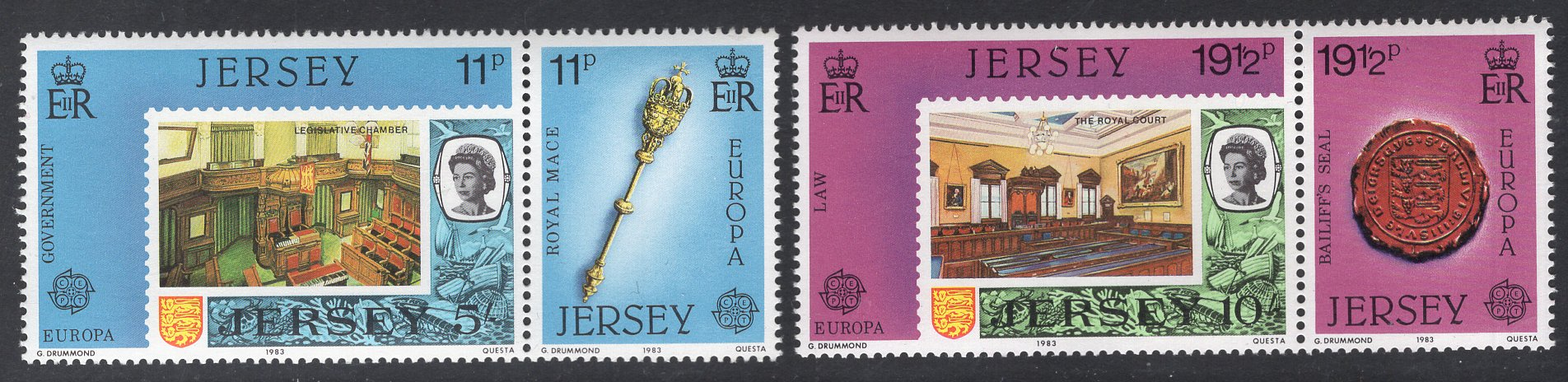 Jersey Scott 307A/309A. Complete set. Mint. Never hinged.
