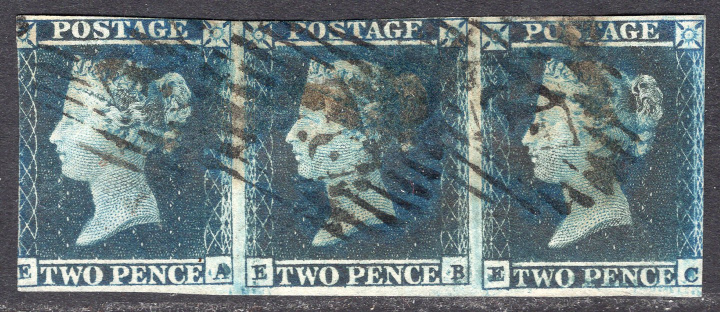 Great Britain Scott 4. Strip of 3. Used. 77