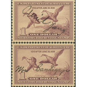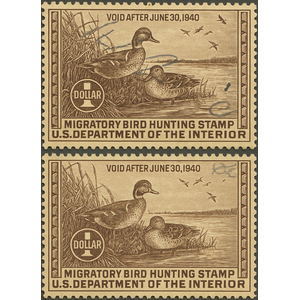 Pair 1939-40 RW6 Federal Duck Stamps $1 Migratory Bird Hunting – Used/Signed