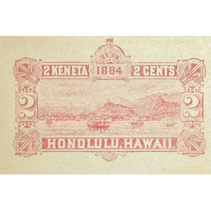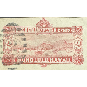 Hawaii 1884 2¢ “2 Keneta / 2 Cents” Red Cut Square • Scott U6 • Honolulu Harbor