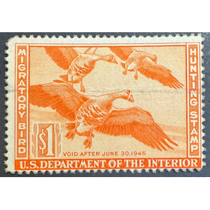 RW12 1945 Federal Duck Stamp $1 Mallards in Flight – Signed – Used