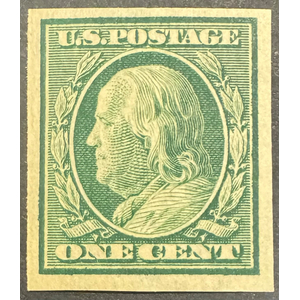 1908 1c Franklin Imperf – Scott 343 – Mint OG – VF/XF Engraved Green