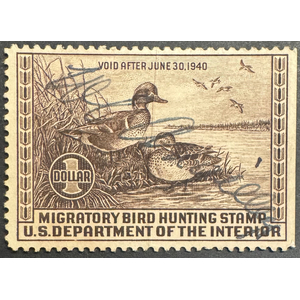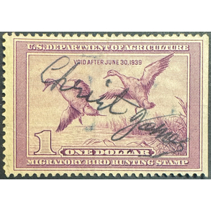 1937 RW4 $1 Migratory Bird Hunting Stamp – Signed Used – Avg/Fine