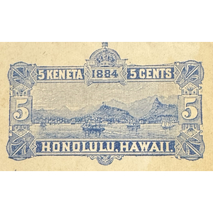 Hawaii 1884 5¢ “5 Keneta / 5 Cents” Blue Cut Square • Scott U8 • Honolulu Harbor