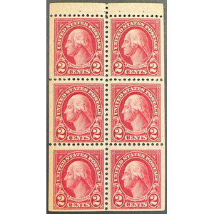 1917 1c Washington Booklet Pane of 6 – Scott 498c – Imperf Vertically – Mint OG
