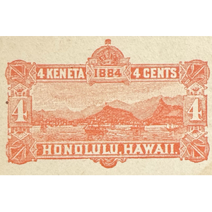 Hawaii 1884 4¢ “4 Keneta / 4 Cents” Red Cut Square • Scott U7 • Honolulu Harbor