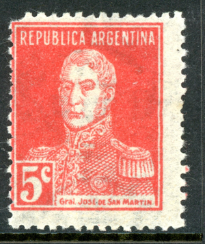 Argentina 1927 San Martin 5¢ Pelure Paper Scott #365b Mint I761