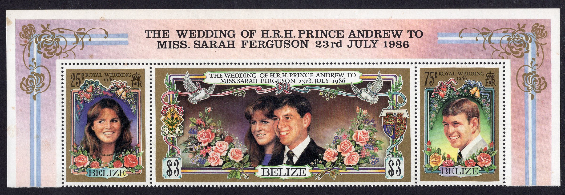 Belize Scott 833. Strip of 3. Mint. Never hinged. Very trivial stain on back.