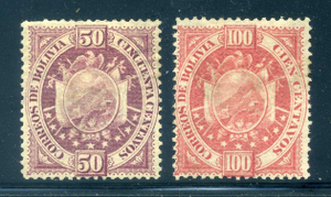 Bolivia 45-46, Coat of Arms High Values, Mint part gum, Scott $60