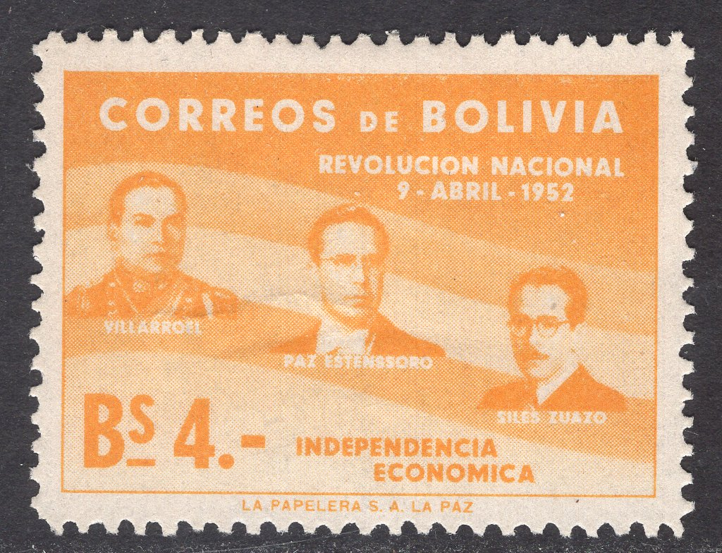 Bolivia Scott 382. Unused. Trivial thin. Number on back. 1