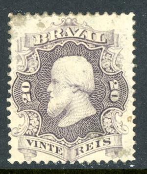 Brazil 1866 Dom Pedro 20R Dull Violet Scott #54a Mint W701