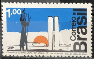 Congress Building, Brasilia, by Oscar Niemeyer, and "Os Guerreiros," by Bruno Giorgi, 1972. Single.Â