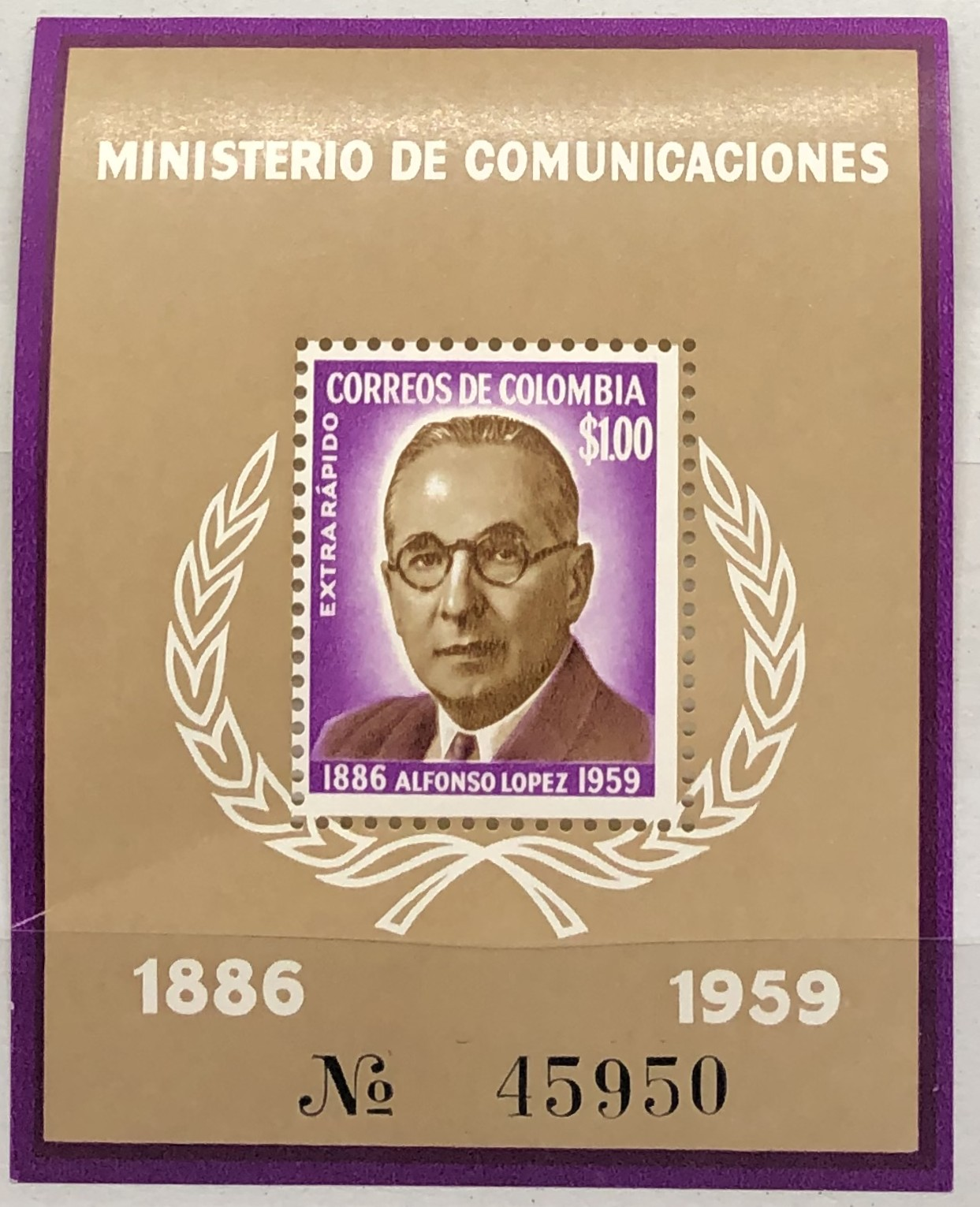 Alfonso Lopez, 1961. Souvenir sheet.