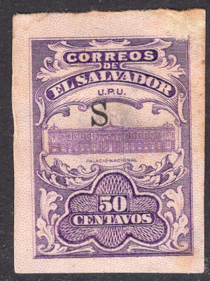 Salvador Scott 420A. Unused. Thin. S overprint. Imperforate.