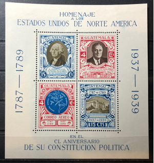 150th anniversary of the United States Constitution, 1938. Souvenir sheet.
