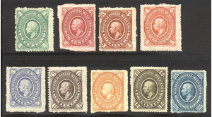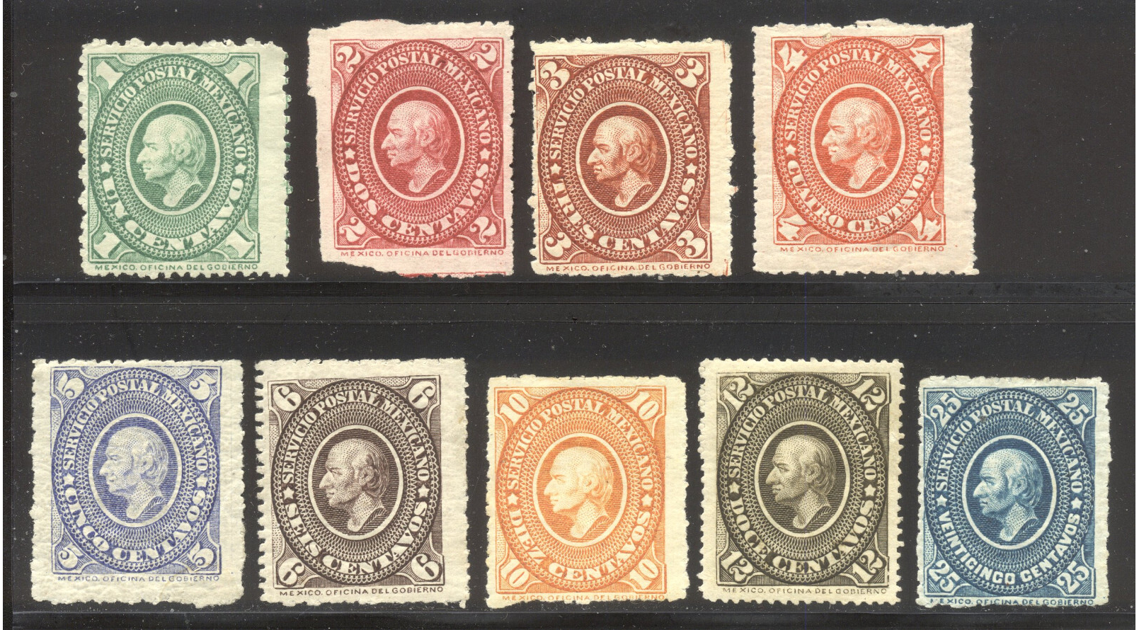 Scott #165-73: 1884 Hidalgo Set Centering & Condition: Mint. Fresh. Fine-Very Fine set. Reverse (Gum Side): Original gum. Hinged. Faults / Imperfections: None The item pictured is the actual item you are purchasing, unless otherwise noted. I also offer an interest-free layaway plan. Ask me about it!" All items will be mailed a day or two after payment is received. --------------------------------------------------------------------------------