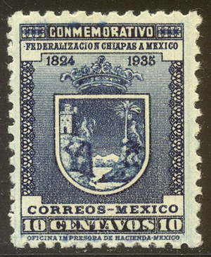 Scott #722a: 1935 10c Chiapas Arms, Unwmkd