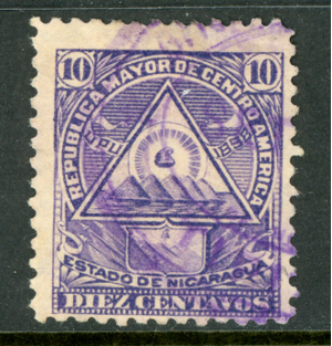 Nicaragua 1896 Seebeck 10¢ Coat of Arms Wmk Postally Used B952 ⭐⭐⭐⭐