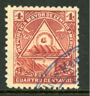 Nicaragua 1896 Seebeck 4¢ Coat of Arms Wmk VFU B887 ⭐⭐⭐⭐⭐⭐