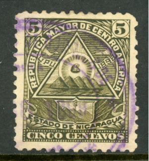 Nicaragua 1896 Seebeck 5¢ Coat of Arms Unwmk Postally Used B956 ⭐⭐⭐⭐