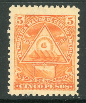 Nicaragua 1898 Coat of Arms 5P Original Seebeck Watermarked Scott 109 Mint Z745