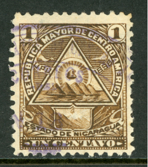 Nicaragua 1898 Seebeck 1¢ Coat of Arms Wmk VFU B871 ⭐⭐⭐⭐⭐⭐