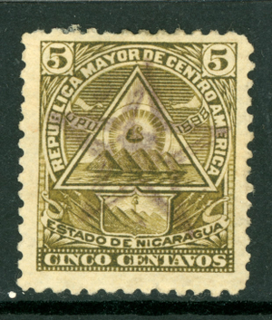 Nicaragua 1898 Seebeck Coat of Arms 5¢ Unwmk Bluefields Star B647
