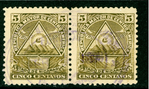Nicaragua 1898 Seebeck Coat of Arms 5¢ Unwmk Pair VFU B651