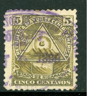 Nicaragua 1898 Seebeck Coat of Arms 5¢ Unwmk VFU B622