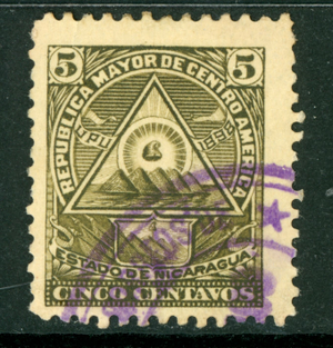 Nicaragua 1898 Seebeck Coat of Arms 5¢ Unwmk VFU B633