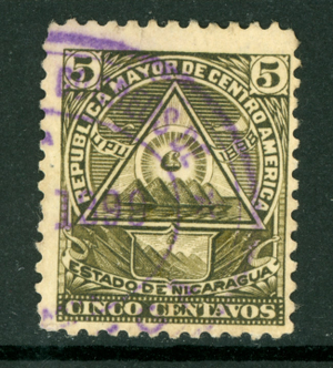 Nicaragua 1898 Seebeck Coat of Arms 5¢ Unwmk VFU B639