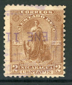 Nicaragua 1899 Justice 2¢ Seebeck Scott 111 VFU Z758
