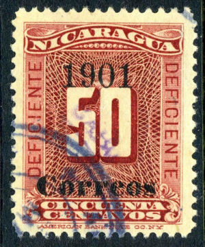 Nicaragua 1901 Numeral 50¢ Due OP Correos at Bottom CABO OP Postally VFU Y210 ⭐