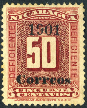 Nicaragua 1901 Numeral 50¢ Due OP Correos at Bottom (Ty 1) Variety Mint M38 ⭐