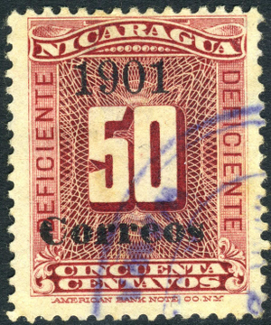 Nicaragua 1901 Numeral 50¢ Due OP Correos at Bottom (Ty 1) VFU M10 ⭐