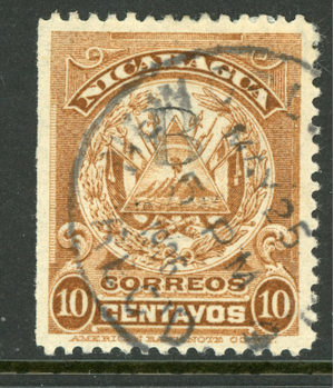 Nicaragua 1905 ABNC 10¢ Yellow Brown New Orleans CDS Y89 ⭐☀⭐☀⭐