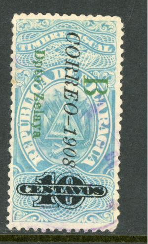 Nicaragua 1908 Bluefields 10¢ READING DOWN VFU K883 ⭐☀⭐☀⭐