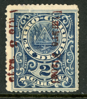 Nicaragua 1911 Railroad Provisional Inverted "ctvs" on Front K730