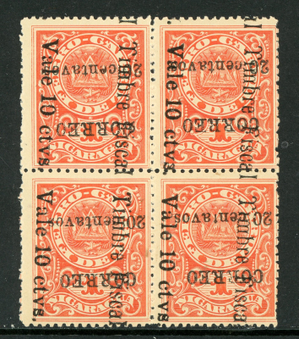 Nicaragua 1911 Railroad Revenue 20¢/10¢/1¢ Postal SC Inverted Sc 288a Block Q459