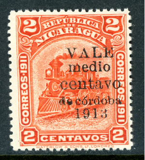 Nicaragua 1912 Zelaya Bluefields Train ½¢/2¢ Vermillion Scott #325 Mint N141