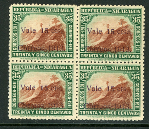 Nicaragua 1913 Gold Liberty 1¢/35¢ Block Sc 310 MNH W790
