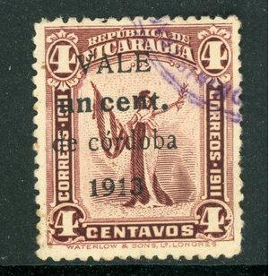 Nicaragua 1913 Liberty 1¢/4¢ Brown Violet Scott #315 VFU Q512