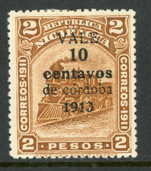 Nicaragua 1913 Zelaya Bluefields Train 10¢/2 Peso Brown Scott #336 Mint Q612