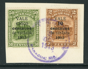 Nicaragua 1913 Zelaya Bluefields Train Pair on Piece Scott #326 VFU F522