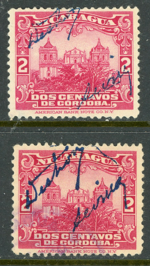 Nicaragua 1922/33 Cathedral 2¢ Flat w Sig Control Mint & VFU V427 ⭐⭐⭐⭐⭐⭐