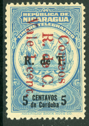 Nicaragua 1923 Postal Tax 1¢5¢ Blue & Black Scott RA36 MNH W975