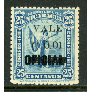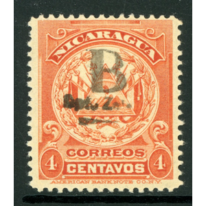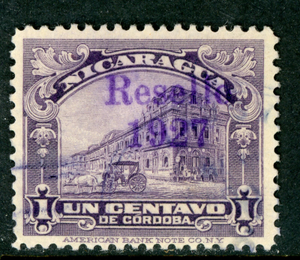 Nicaragua 1927 Cathedral Provisional 1¢ Violet w/Ditto Ink OP VFU V247